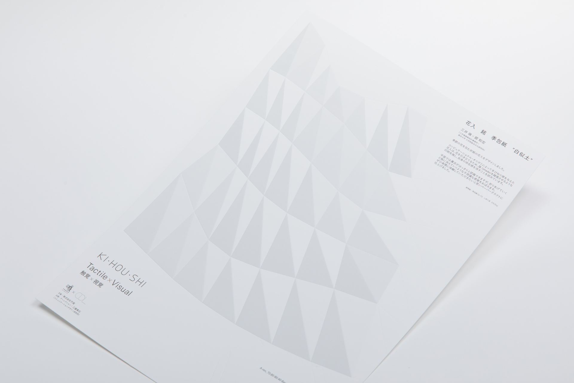 株式会社 竹尾「気包紙」の新製品を記念した展覧会「KI・HOU・SHI Tactile×Visual 触覚×視覚」のためにデザインした。